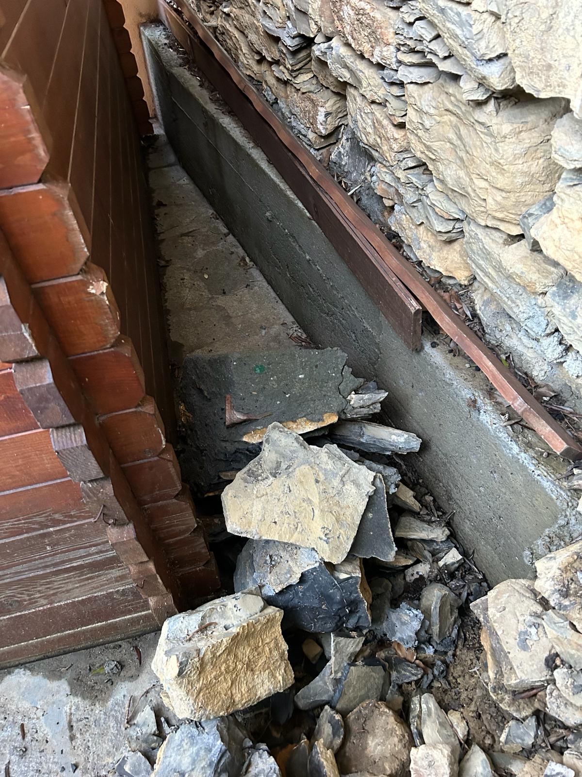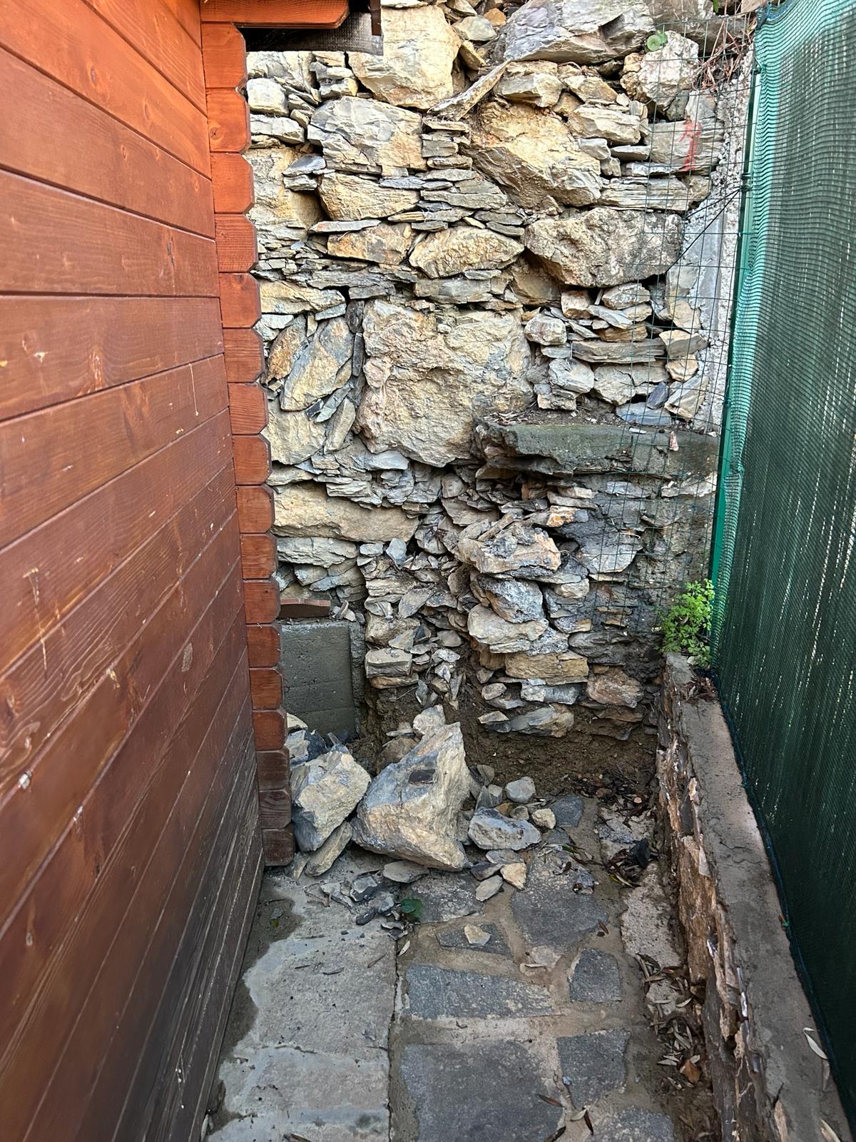 Crollo di pietre da muro a secco, sulla terrazza di mia proprietà. Tale muro è sottostante la strada comunale di via Besso corrispondente al civico 14, mia residenza.