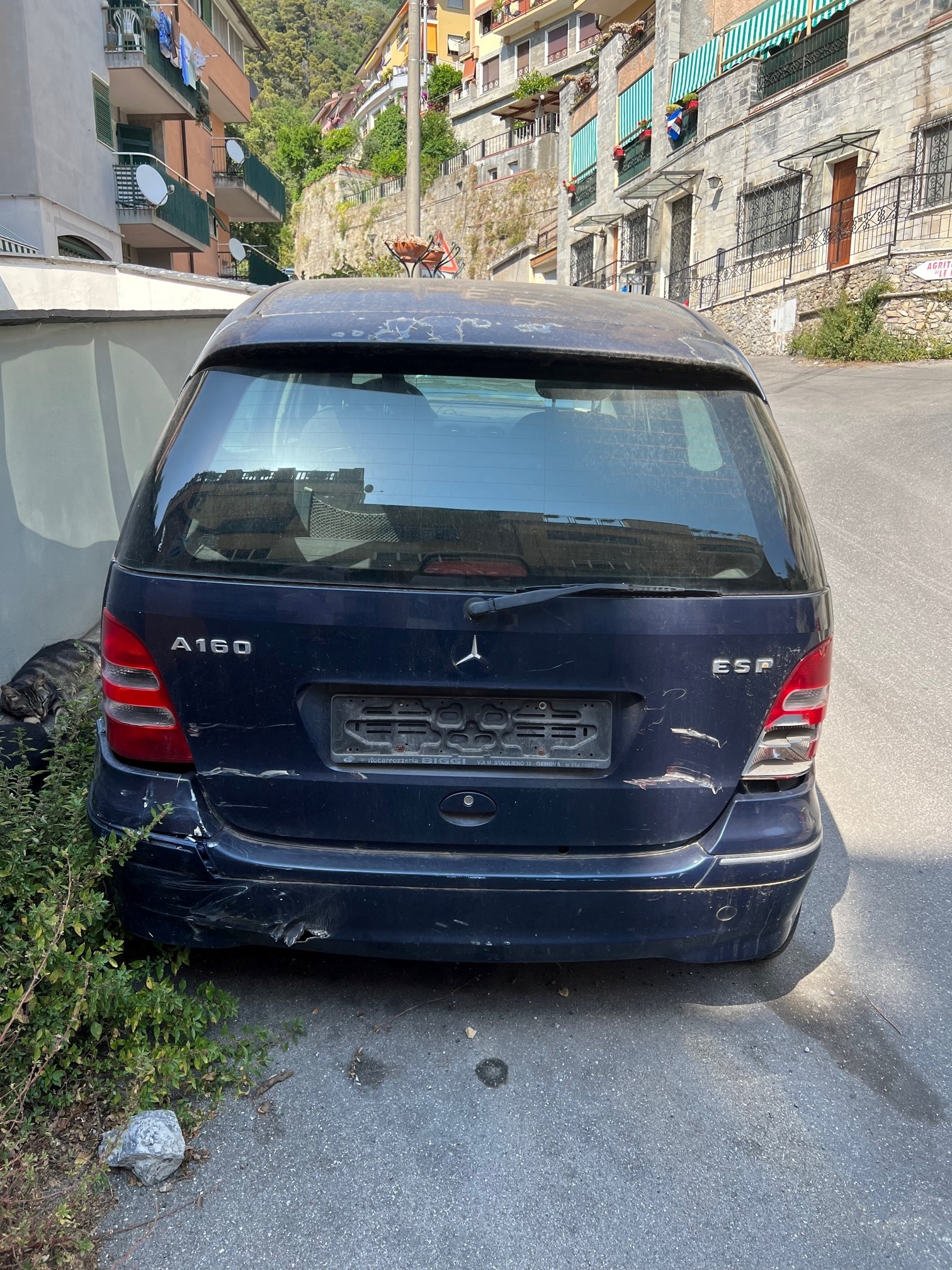 Buongiorno, vi segnalo la presenza di un'auto abbandonata in via Mazzini 299 (è una Mercedes classe A), l'auto si trova lì da almeno due anni, ha le gomme a terra e come da foto è da considerarsi un rifiuto che andrebbe rimosso al più presto. Attorno all'auto le erbacce ormai sono diventate "alberi" con conseguenti problemi di decoro e soprattutto di igiene. Potreste avviare la procedura per la rimozione? Grazie.