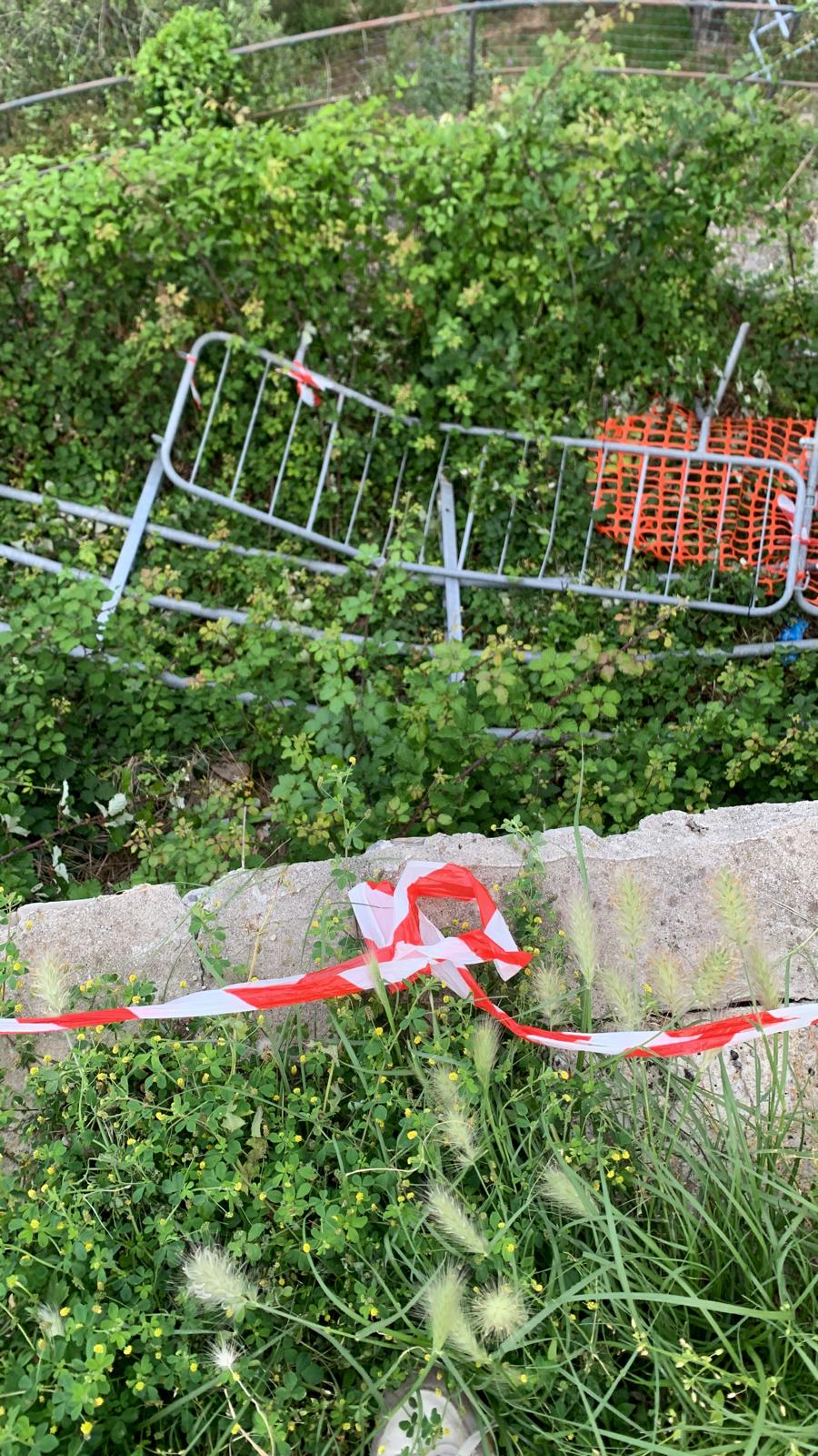 Descrizione del problema riscontrato La transenna apposta a protezione della ringhiera sulla.rotatoria è caduta nella fascia sottostante.