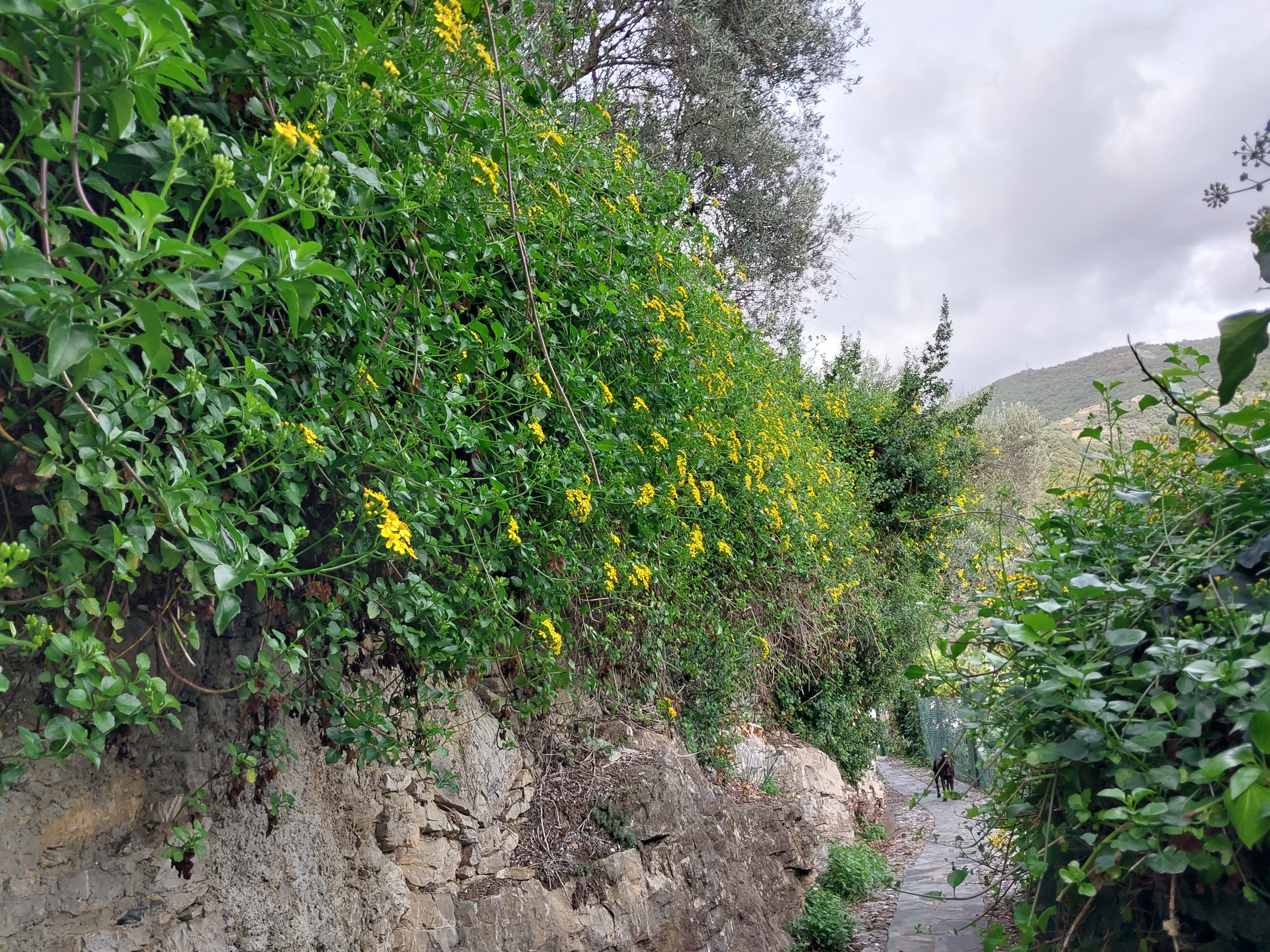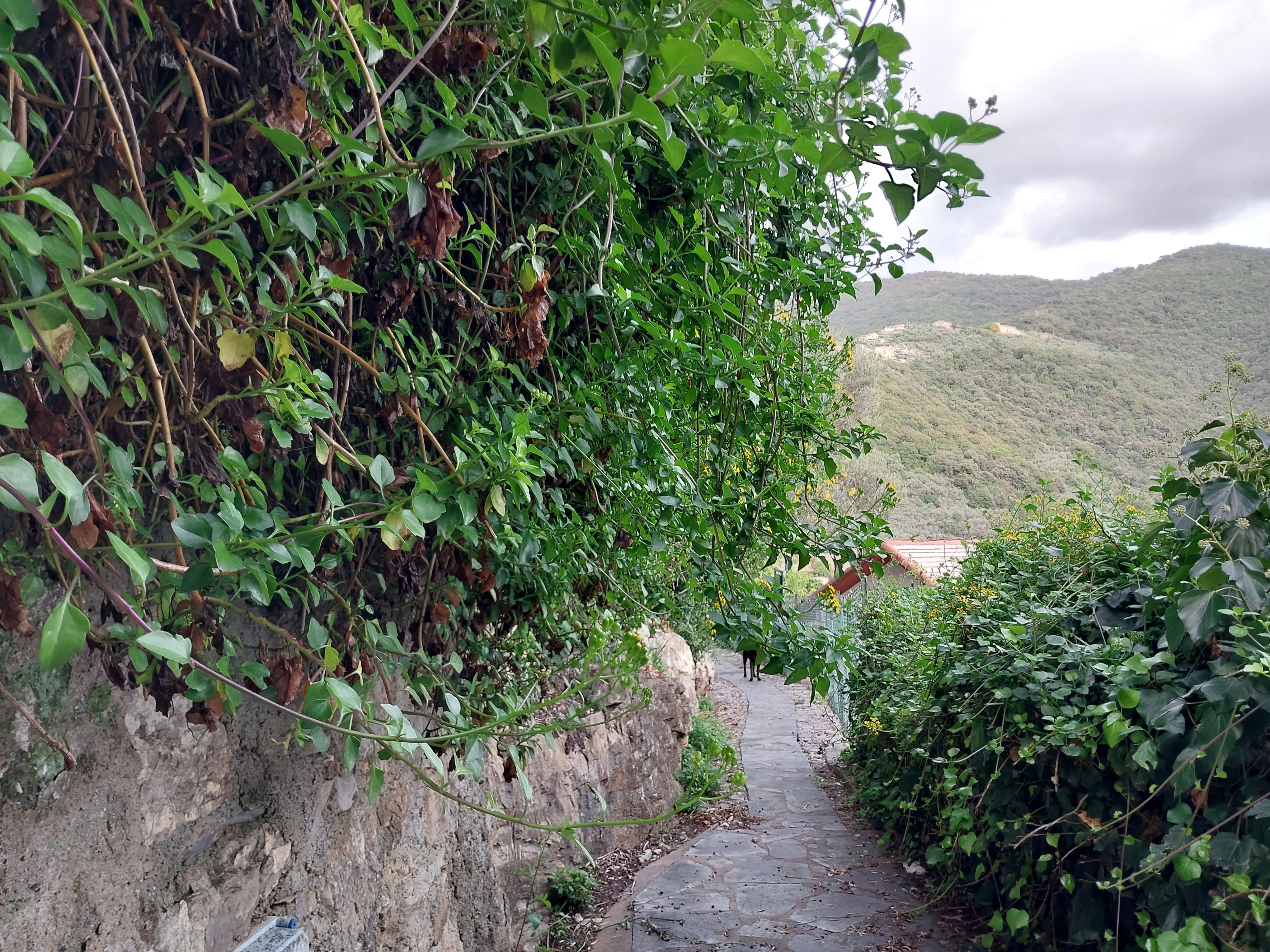 Abbandono terreno di fronte al civico 11c di via Priaruggia con pericolo idrogeologico , difficoltà passaggio pedonale , invasione piante su proprietà condominiali e rischio cadute.