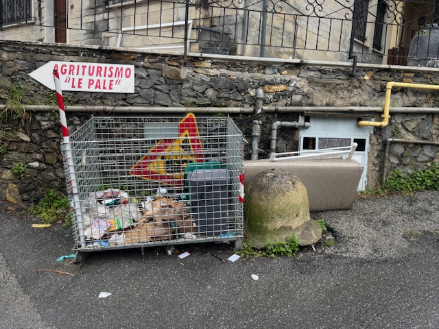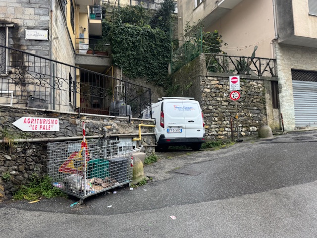 Nell'area Tra Via Campodonico e L'entrata di Via La Bussola, nel Comune di Pieve Ligure, C'è una griglia destinata ai bidoni per la raccolta dei rifiuti. Purtroppo, questa è stata trasformata in un cassonetto dove vengono abbandonati rifiuti di vario genere, compresi quelli dei cani, che gli abitanti della zona vi gettano.